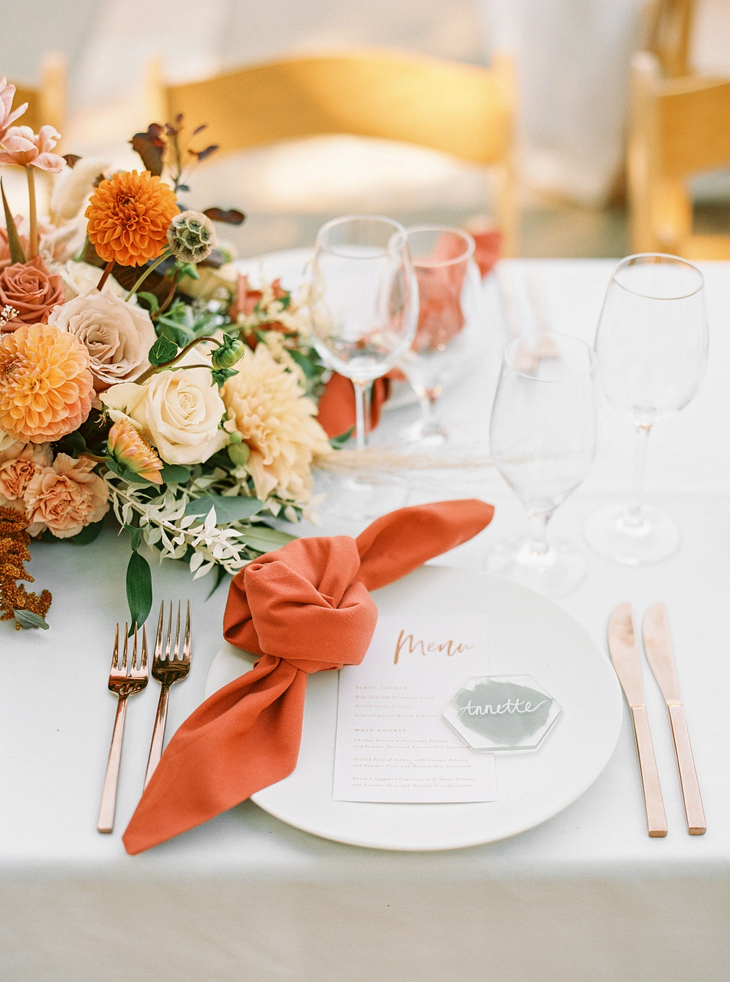 Based on your design vision and overall budget, we will recommend the best rental company for all your event rental needs, including lighting, tables, chairs, linens, place settings, glassware, and more! With our team coordinating all rentals for you, we ensure they every last detail is handled and take one more item off of your plate (pun intended)!